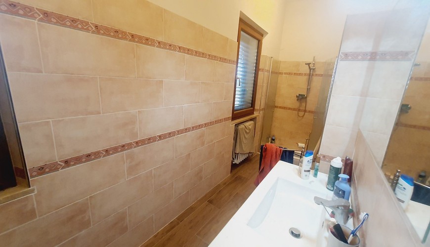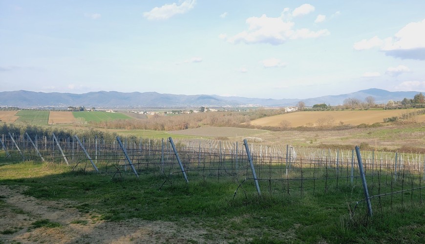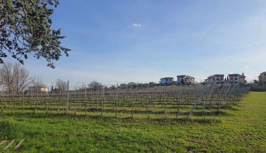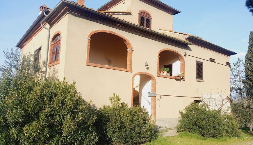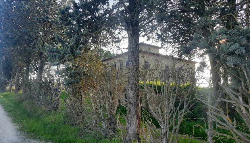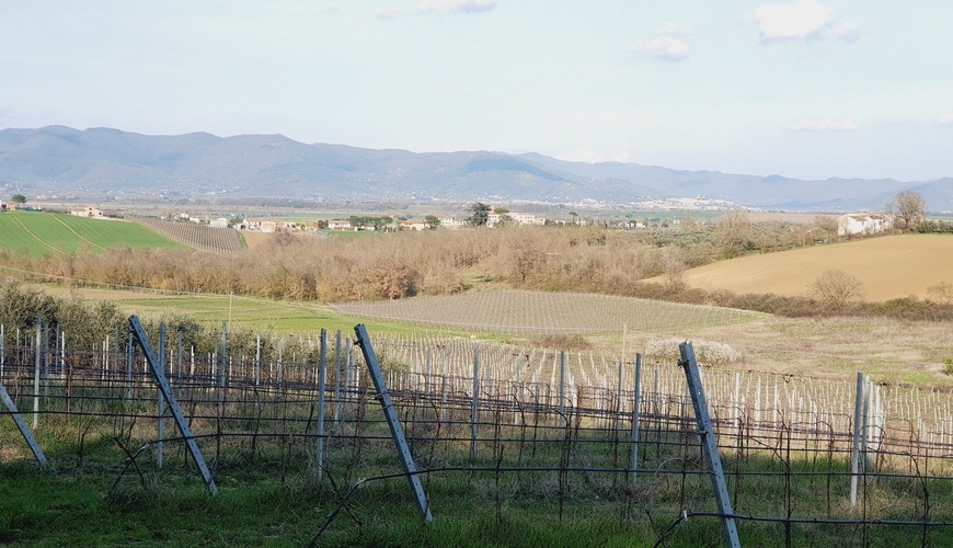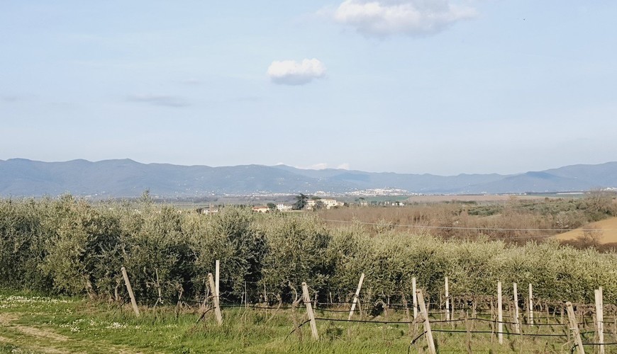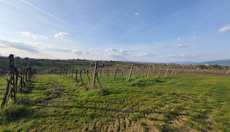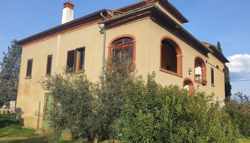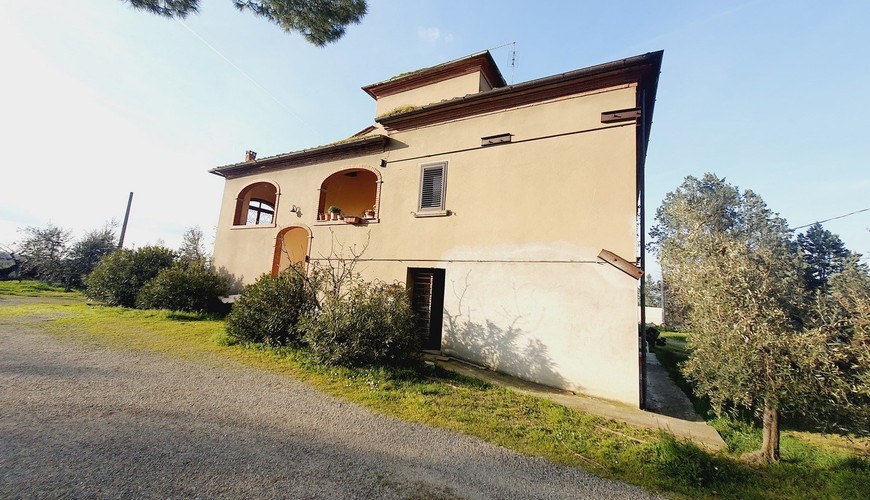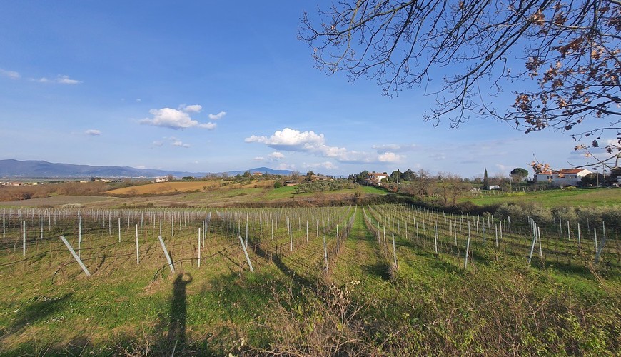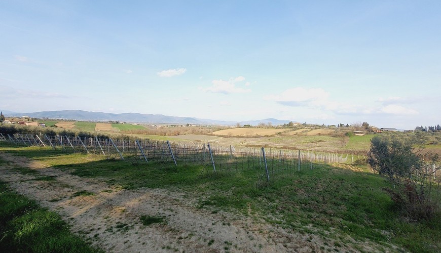 In a hilly position, from which you can enjoy a magnificent view of the Tuscan hills, we are selling a 360m2 farmhouse on two levels with 12 hectares of newly planted irrigated vineyards with Syrah, Sangiovese and Trebbiano grapes as well as a small part of olive grove.