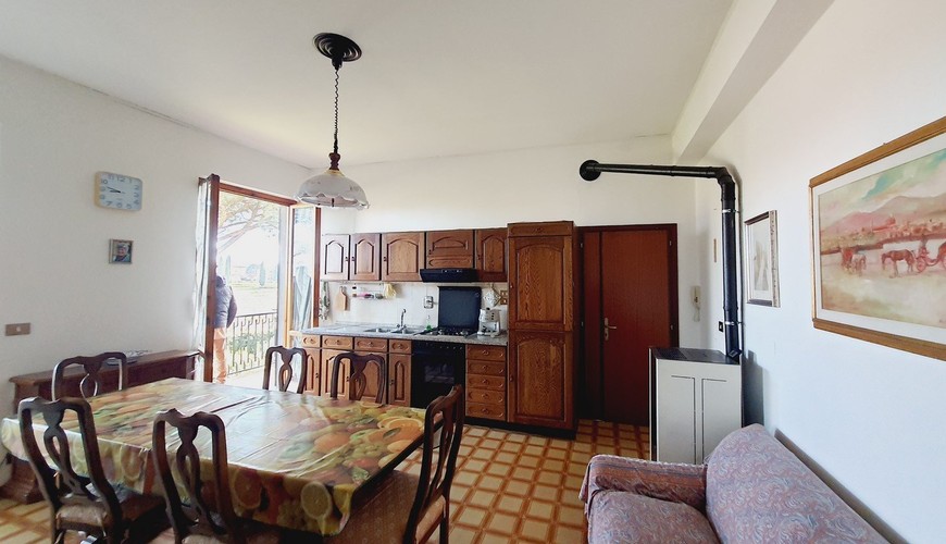 Single house located in a raised and panoramic position, perfect for those seeking tranquility and large spaces. Divided into two apartments both with independent entrances, it offers a unique opportunity for customisation. The first apartment, renovated in the late 1980s, extends over 125m2 and includes a welcoming living room, a kitchen, three double bedrooms and two bathrooms. The second apartment, never renovated, boasts a surface area of 135m2 with a living room and kitchen with terrace, dining room, three double bedrooms and two bathrooms.