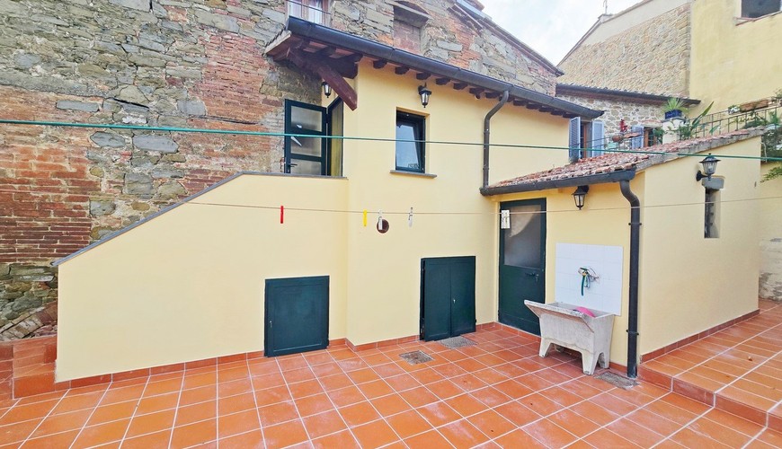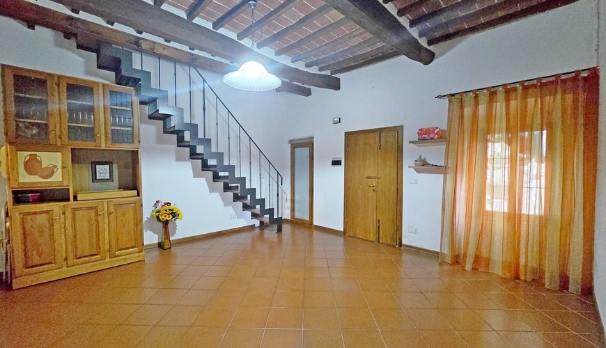 L'immobile, ristrutturato in stile toscano con solai in legno e cotto è disposto su due livelli ed è composto al piano terra da soggiorno/pranzo, angolo cottura, camera e bagno.