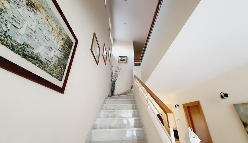 On the first floor which is accessed by a beautiful marble staircase there are three bedrooms all with terrace and three bathrooms.