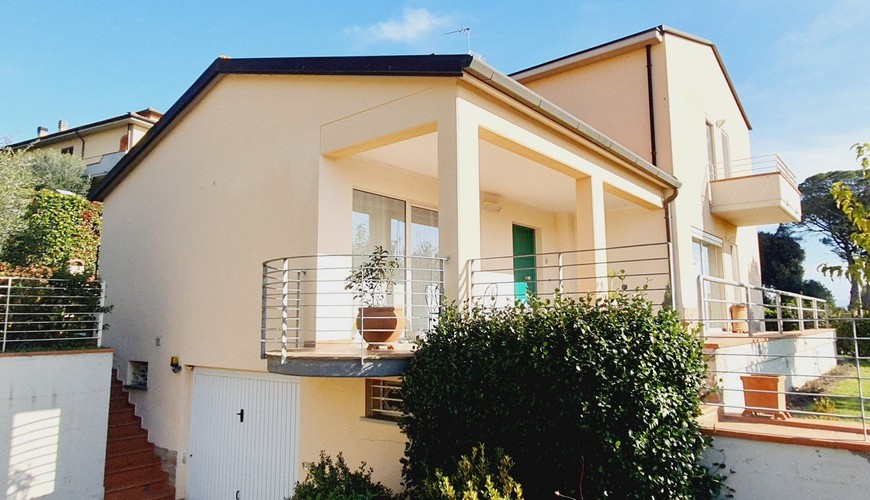 The villa is on three levels and on the ground floor there is a living room with large window, dining area, kitchen, study as well as a small apartment with living room / kitchen, bedroom and bathroom for the servants.