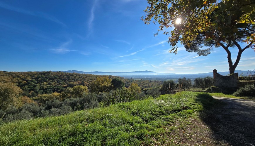 On a hilltop offering views of pristine nature and view of the city of Arezzo, we are selling a detached stone villa, reached after a kilometer of dirt road.