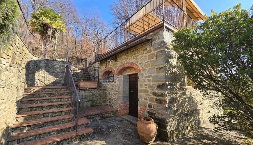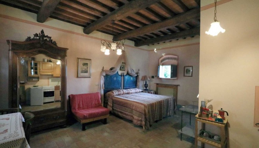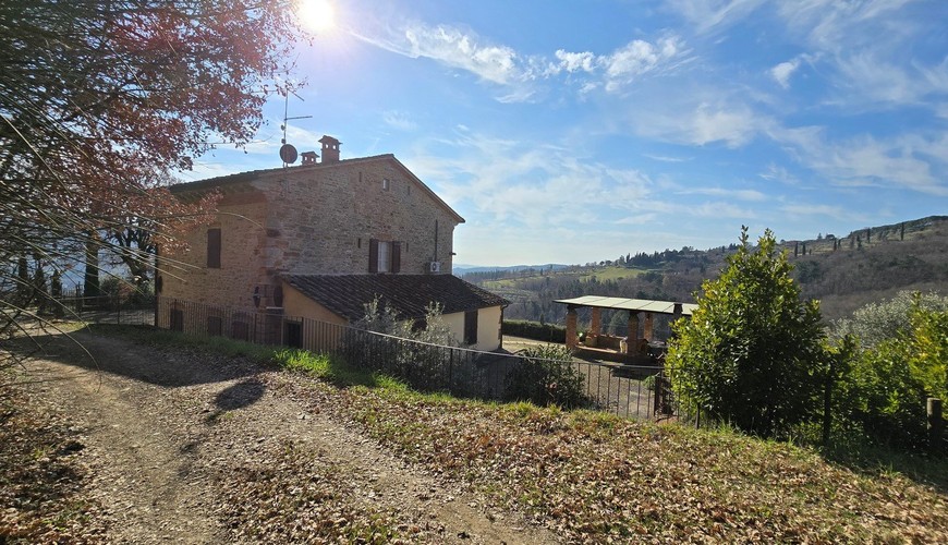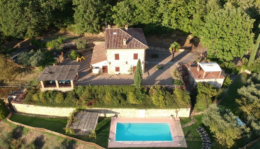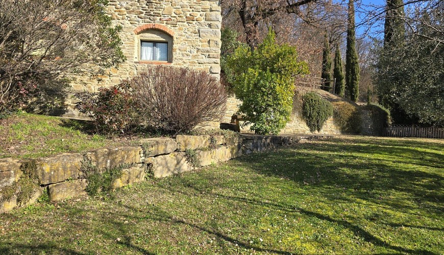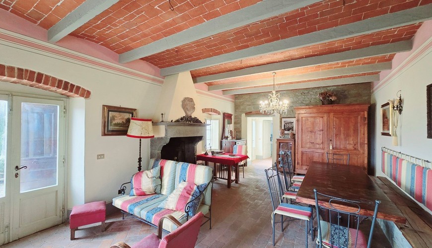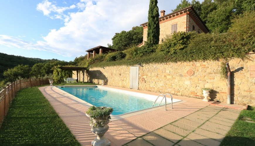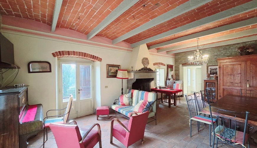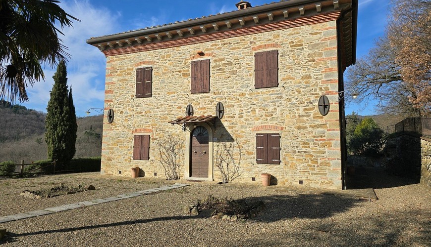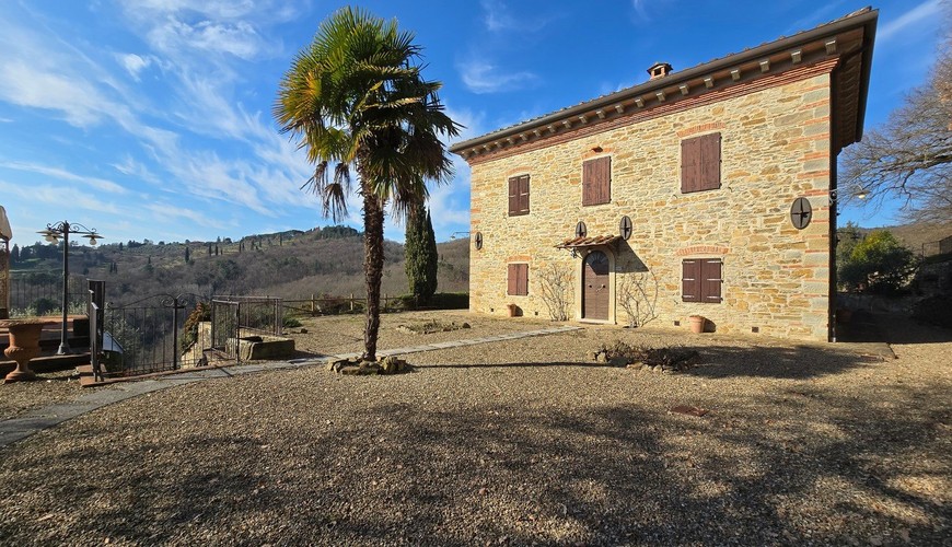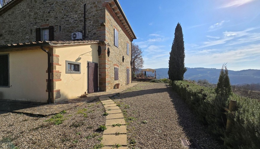 On the hills of Capolona, 10 minutes by car from the center of Arezzo, we are selling a stone farmhouse of approximately 300 m2 with a 40 m2 outbuilding, swimming pool and park.