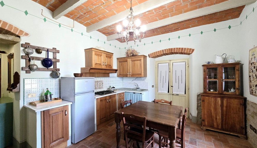 On the ground floor there is a two-room apartment with a living area where we find a characteristic and ancient wood-burning oven, a kitchenette, a double bedroom and a bathroom.