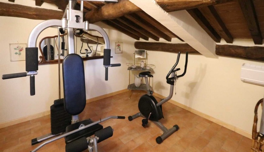 On the second floor there are three attic rooms which can be used in part, where we find a small gym and a service bathroom.