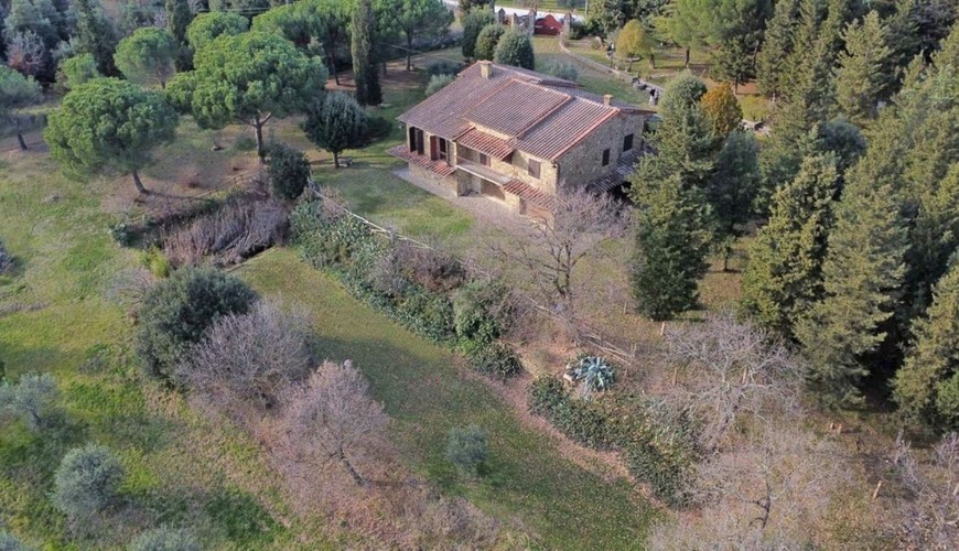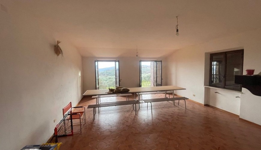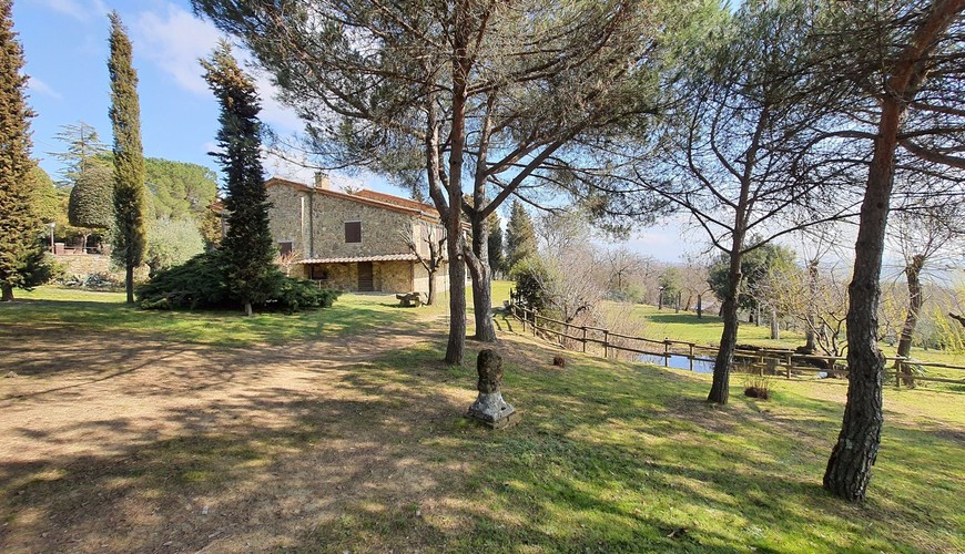 Situated in a hilly position with a view over the entire Valdichiana, we are selling a farmhouse immersed in a plot of land of almost 17,000 square meters that offers an environment of great privacy where silence and tranquility reign.