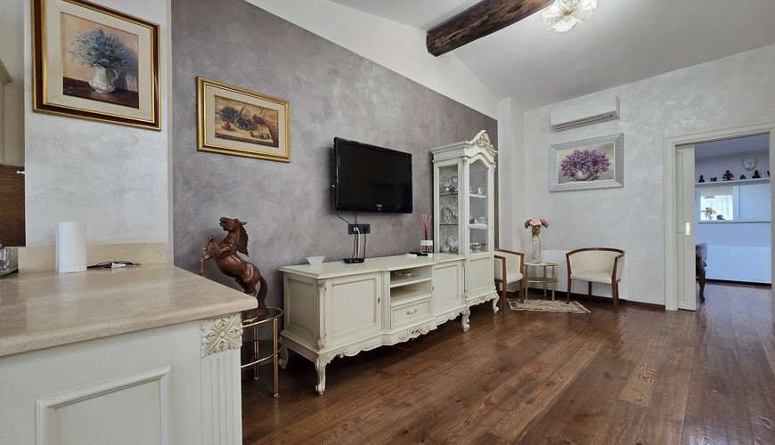 L'immobile si trova al primo piano senza ascensore e si compone di una grande zona living con angolo cottura e terrazzo, camera matrimoniale con cabina armadio e bagno.