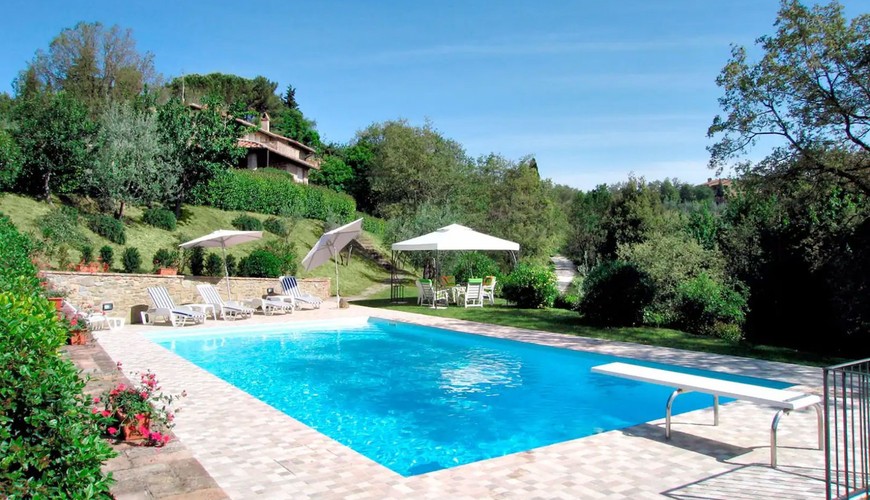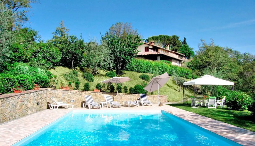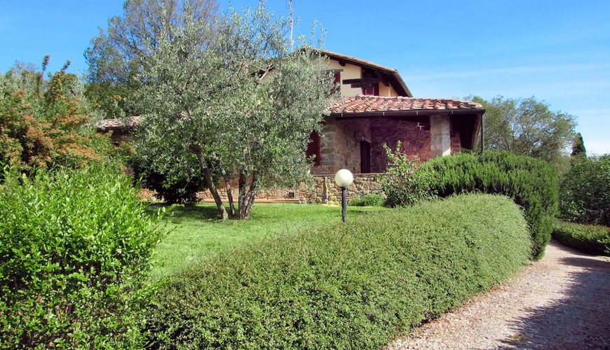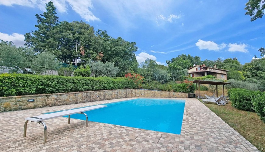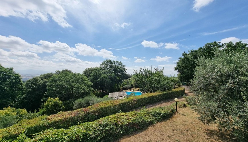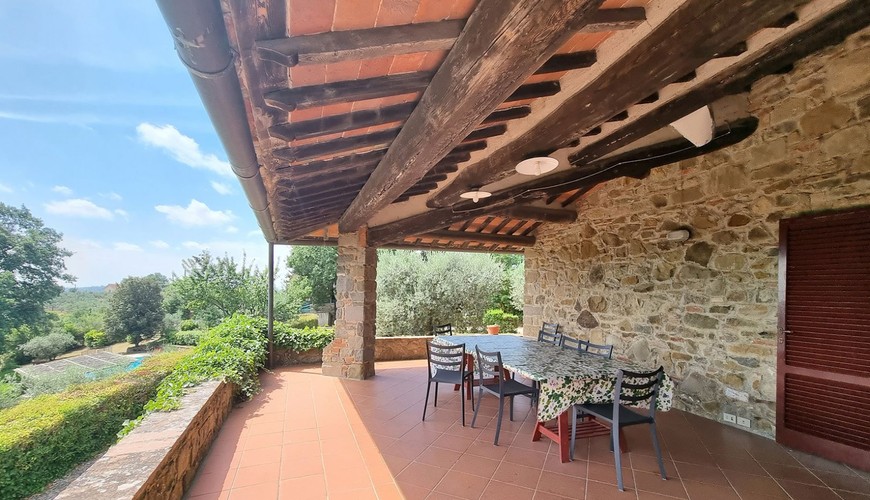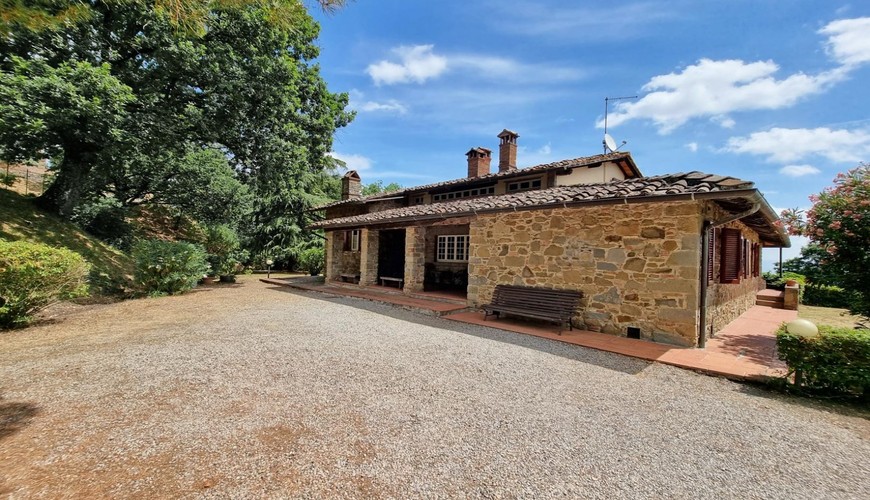 Sulle colline sopra il paese di Monte San Savino vi proponiamo in vendita questa bellissima casa colonica in pietra con piscina.