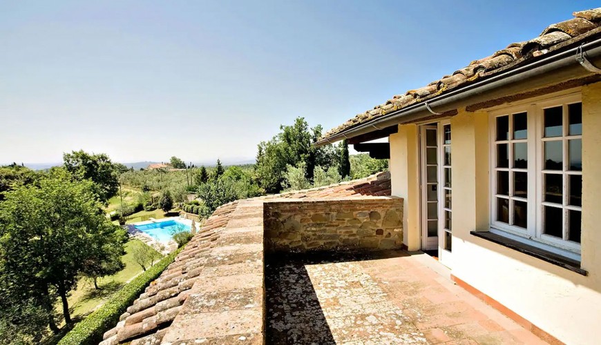 Il casale si presenta con pavimenti in cotto e travi in legno per ricreare un ambiente in armonia con l’atmosfera del luogo ed è circondato da un rigoglioso giardino di 3.820 mq nel quale è stata realizzata una bellissima piscina panoramica 6×12 mt.
