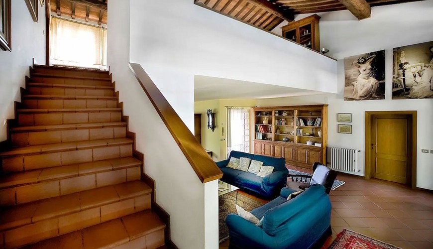 Sempre tramite questa bella scala da piano terra possiamo accedere al piano seminterrato caratterizzato da due spaziosi vani.