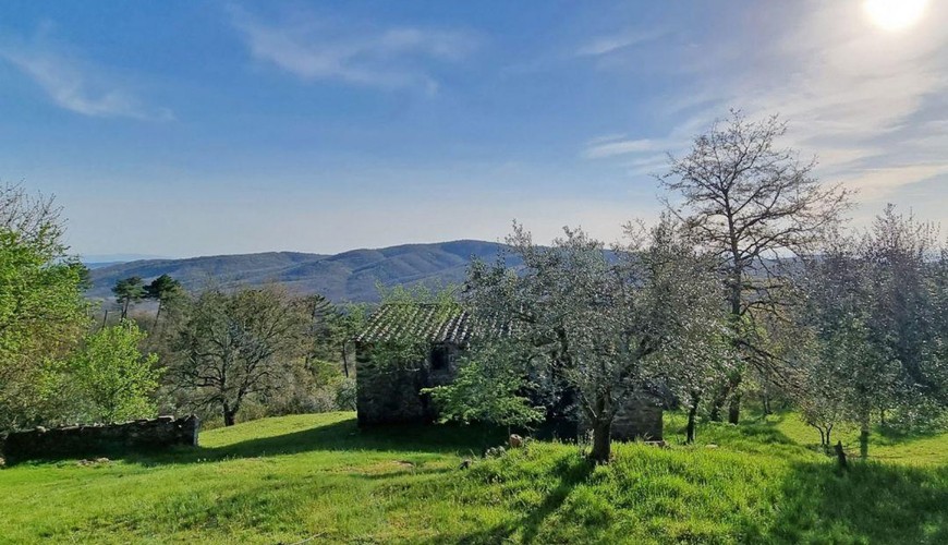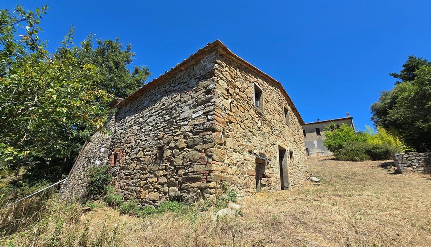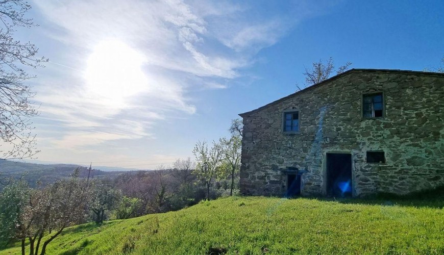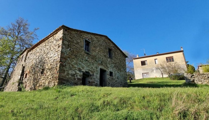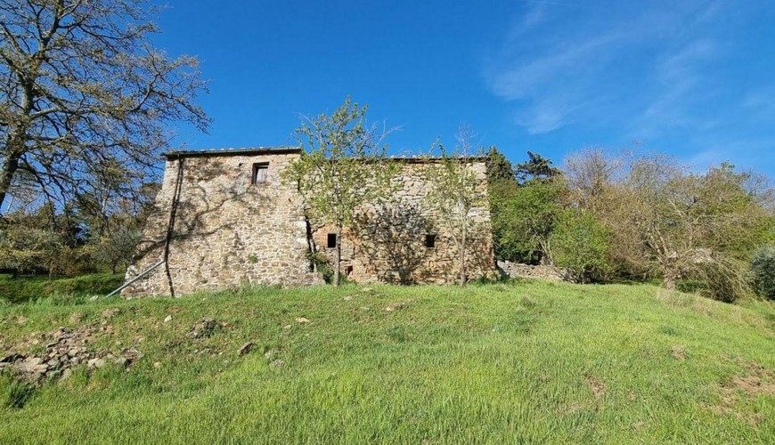 Il complesso immobiliare è composto da un antico casale in pietra e da una casa costruita più recentemente ed è circondato da 2,5 ettari di terreno.
