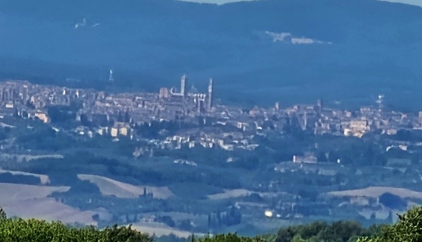 Proprietà situata in posizione panoramica da cui in lontananza si vede la città di Siena e il monte Amiata.