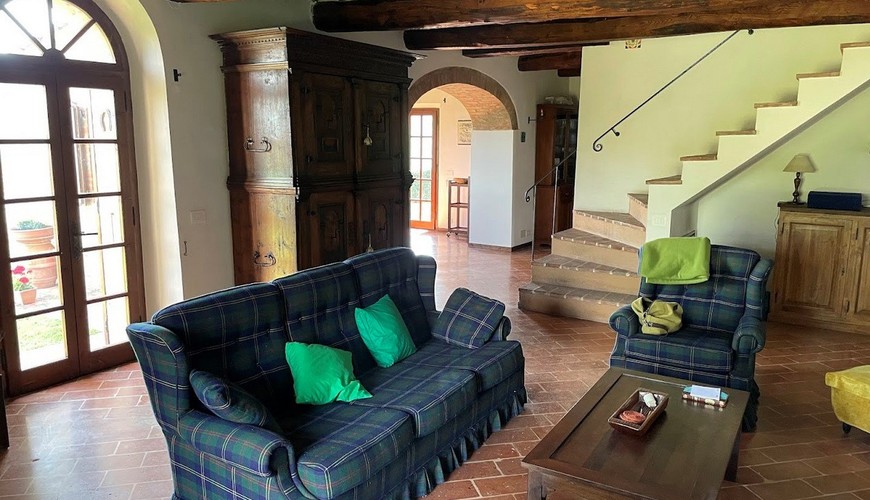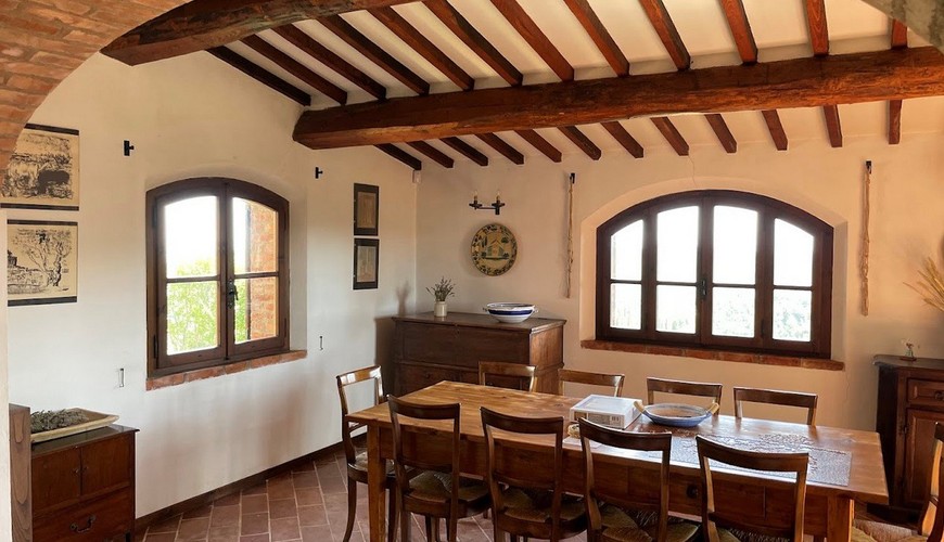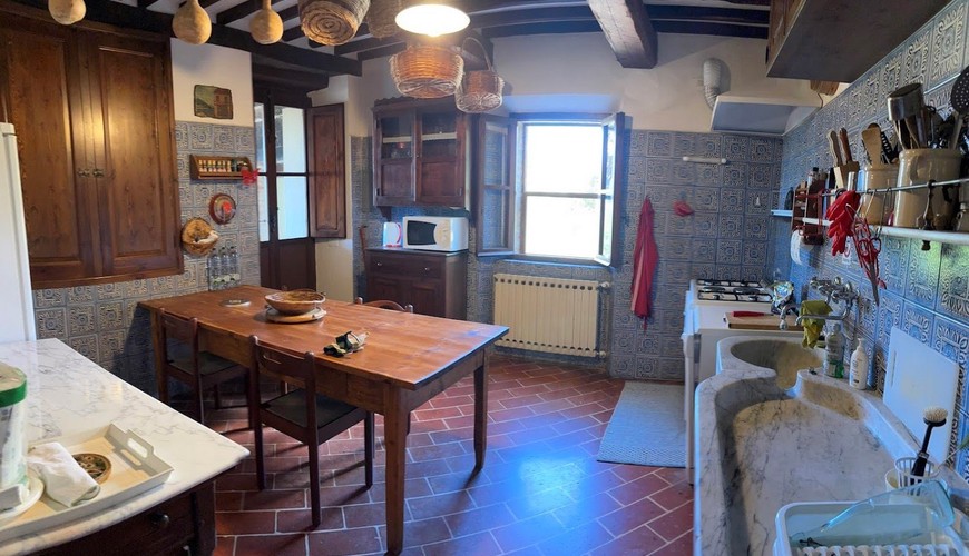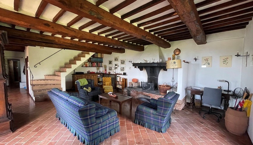 L'immobile principale di circa 231 mq, completamente ristrutturato, si sviluppa su due livelli e conserva i tratti autentici della tradizione toscana con travi a vista e pavimenti in cotto.