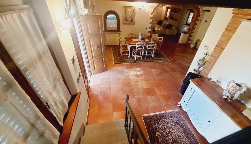 Al piano terreno troviamo una grande zona living con cucina a vista, una camera matrimoniale, il bagno e il ripostiglio mentre il piano superiore ospita tre camere da letto.