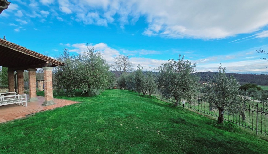 Il paesaggio collinare tipicamente toscano che fa da cornice alla proprietà che offre un contesto di privacy, ideale per apprezzare l'autentica atmosfera rurale del luogo, senza rinunciare ai principali servizi e comfort grazie alla vicinanza al centro abitato di Monte San Savino.