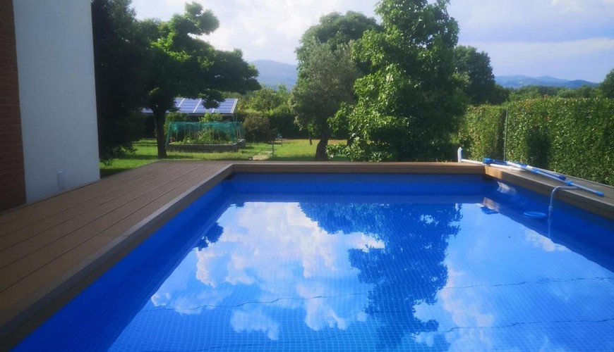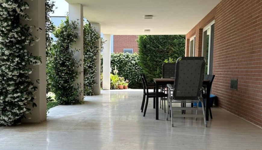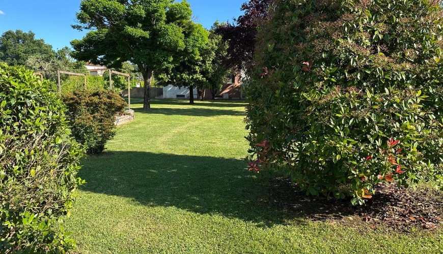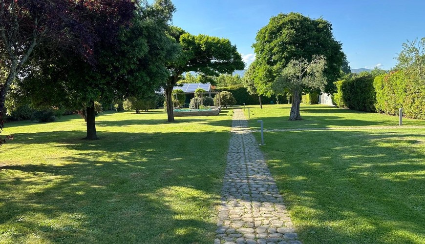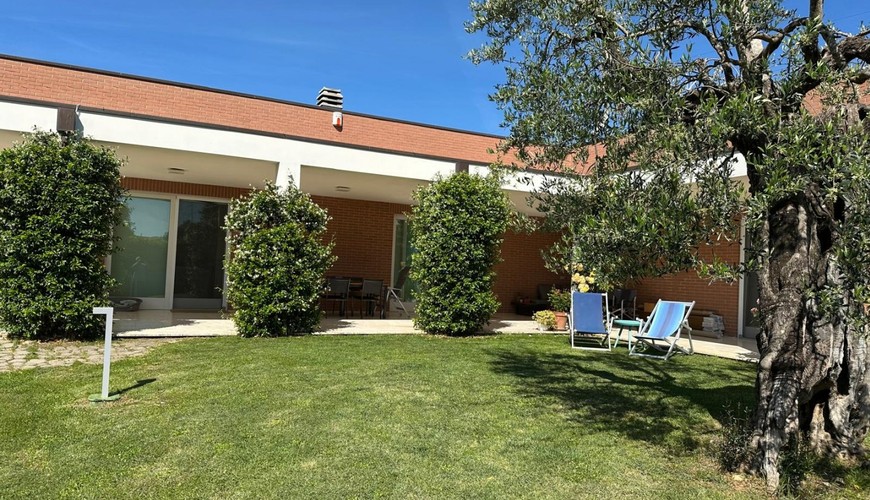 Il giardino di circa 2.000 mq è totalmente recintato e completo di impianto di irrigazione, alimentato da pozzo ed impianto di illuminazione, impianto antizanzare perimetrale ed una piscina appoggiata con ampio solarium. A corredo del tutto, nel giardino, è presente un carport con impianto fotovoltaico di kw.10 . La recinzione della proprietà è costituita da un muretto in cemento, con rete metallica schermata da alte siepi, ha due cancelli carrabili automatizzati, due cancelli pedonali con videocitofono e nuovo impianto d'allarme perimetrale.