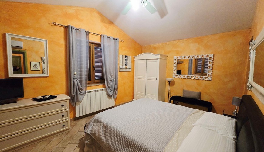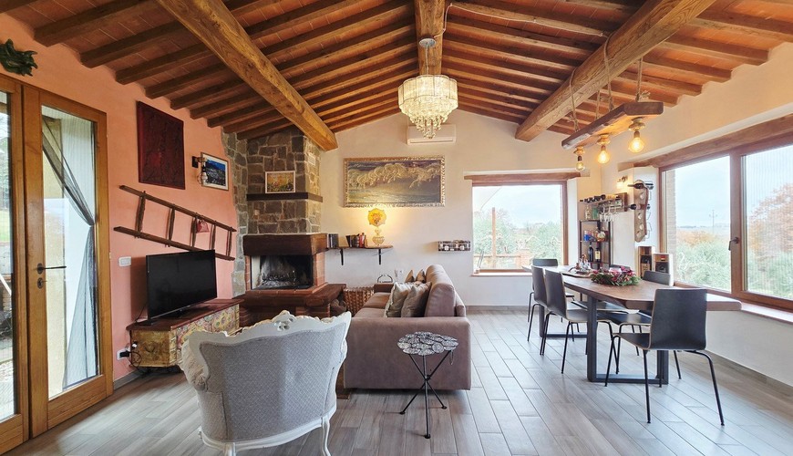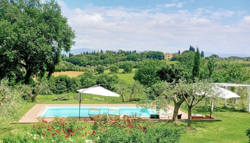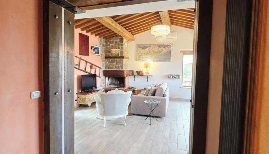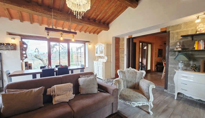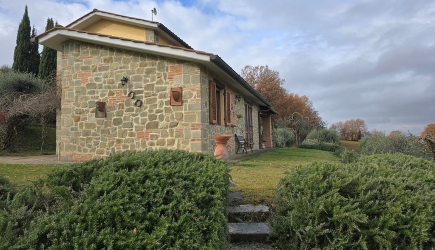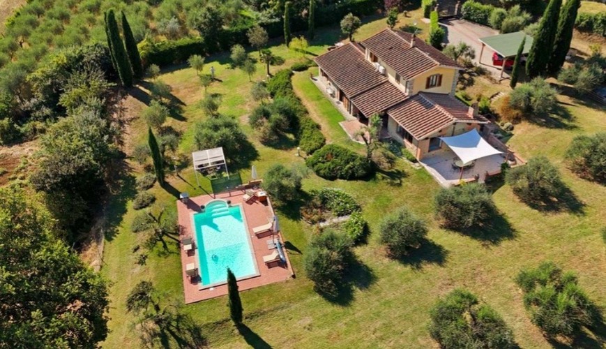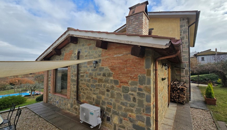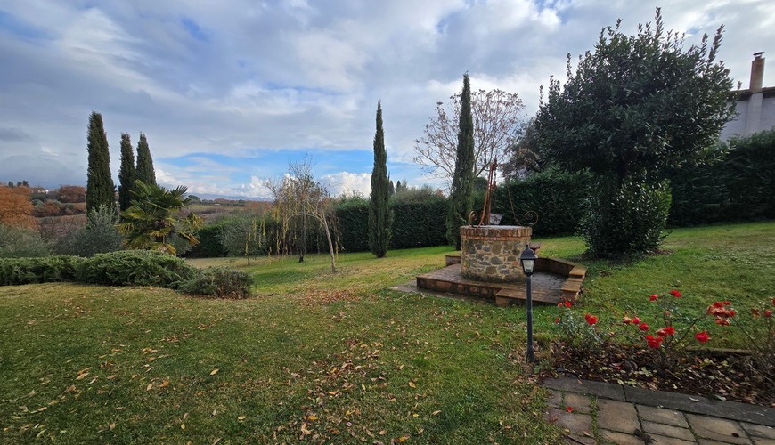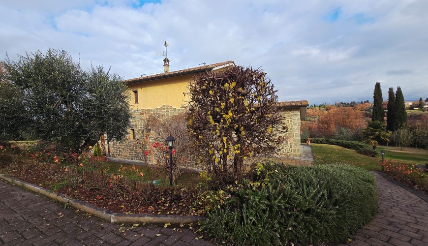 Villa singola in posizione collinare con 3300 mq di giardino e piscina. L'immobile è disposto su due livelli. Al piano terra troviamo un doppio soggiorno, un ampia cucina con ripostiglio e una camera con bagno e guardaroba. Al primo piano a cui si accede da scala interna troviamo due camere matrimoniali e bagno.